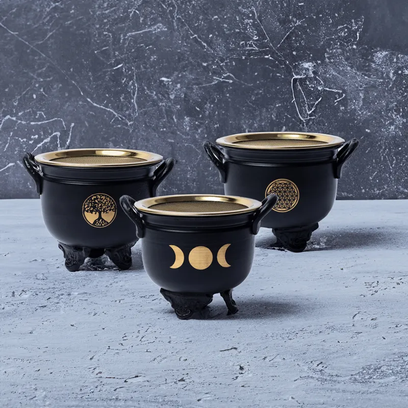 Tento jedinečný a okouzlující kotlík-kadidelnice je vyroben ze železa a zdobený zlatými symboly měsíční fáze, což přidává mystický nádech k vašemu rituálu očištění prostoru. Nejenže je praktický, ale jeho design přináší i hluboký duchovní význam, spojený s měsíčními cykly, které jsou často používány v magii a meditaci pro odrážení různých životních cyklů a energetických fází. Tato kadidelnice je perfektní pro každého, kdo se zabývá spirituálními praktikami, či hledá způsob, jak zpříjemnit a energeticky vyčistit svůj domov. Je to také skvělý dárek pro milovníky aromaterapie a mystických tradic.